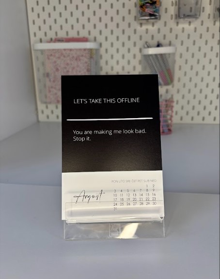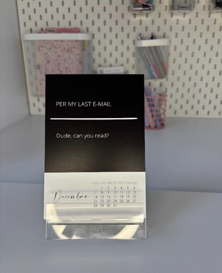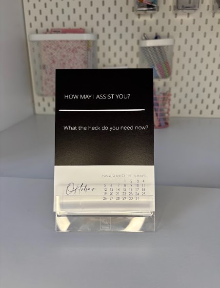 Kalendar za muškarce za 2026. godinu. Kalendar je napravljen s idejom da na zabavan način prikaže standardne fraze u poslovnom engleskom jeziku.